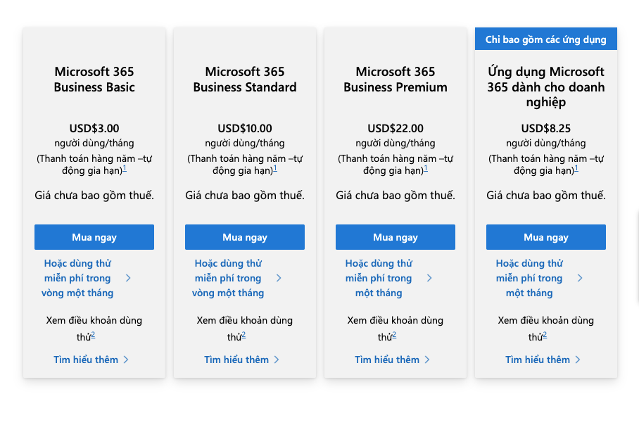 Dung Lượng: 1TB bộ nhớ đám mây/người dùng (áp dụng cho tất cả các gói Business)