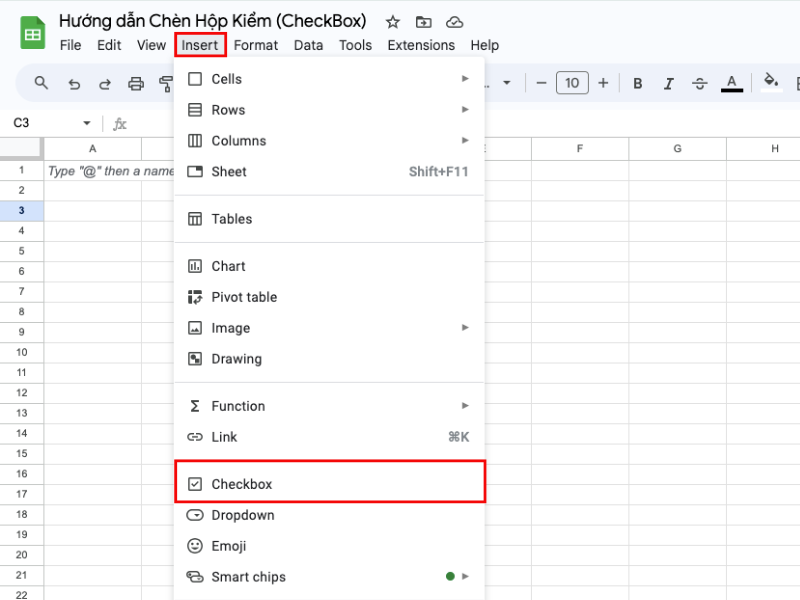 4.1. Tạo hộp kiểm trong Google trang tính