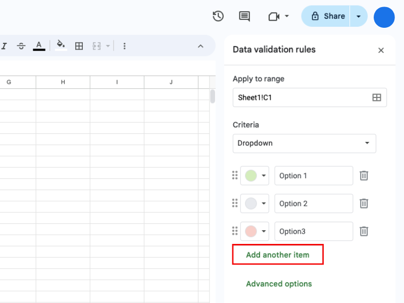 4.3. Tạo danh sách thả trong Google trang tính