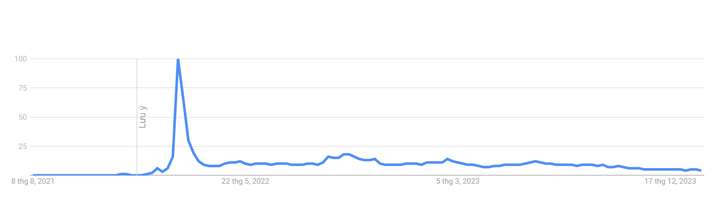 Khi nhập từ khóa, kết quả hiển thị biểu đồ với xu hướng tìm kiếm theo thời gian. Bạn có thể xem sự thay đổi trong lượng tìm kiếm của từ khóa này trong suốt một khoảng thời gian cụ thể, ví dụ như trong vòng 12 tháng gần đây.