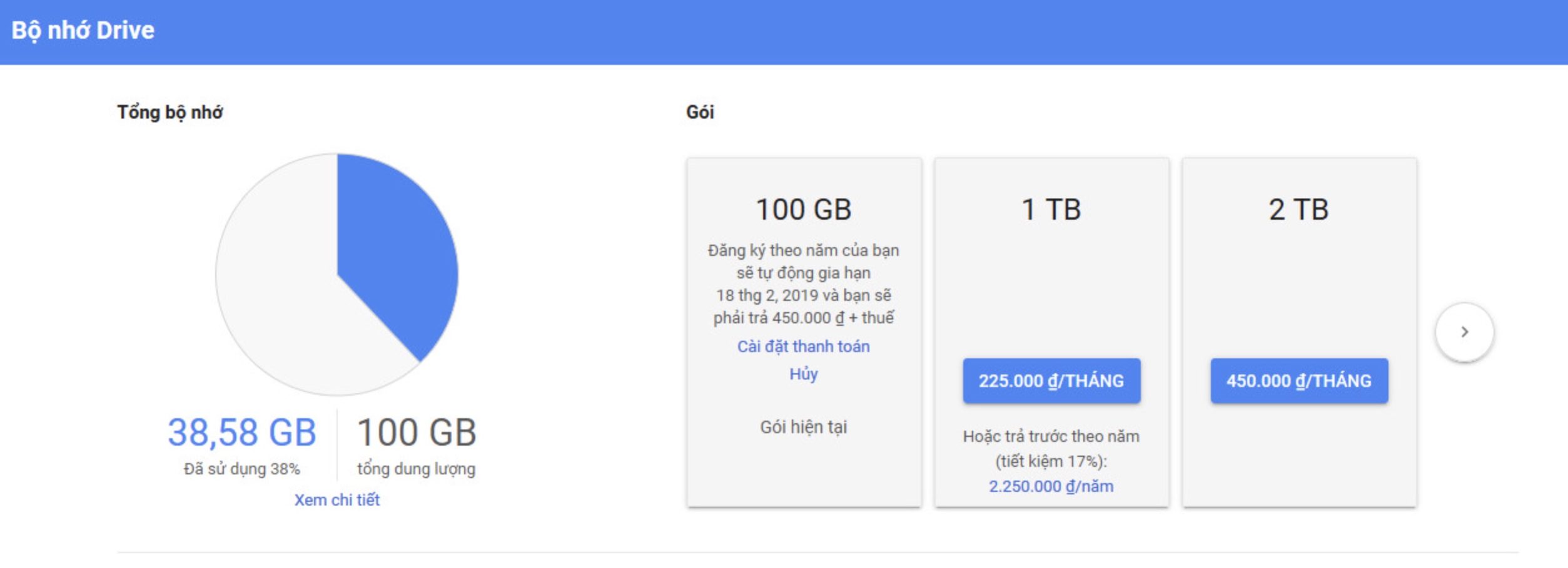 Chi phí nâng cấp tài khoản Google Drive (cập nhật mới):
