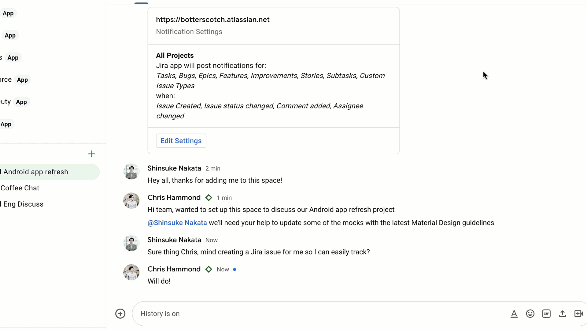 Ứng dụng trò chuyện cho phép người dùng liên kết trực tiếp từ các hệ thống bên thứ ba được kết nối. Bằng cách giữ tất cả các cuộc hội thoại trong một không gian trung tâm, người dùng có thể bắt kịp tốc độ không đồng bộ và giải quyết vấn đề nhanh chóng.
