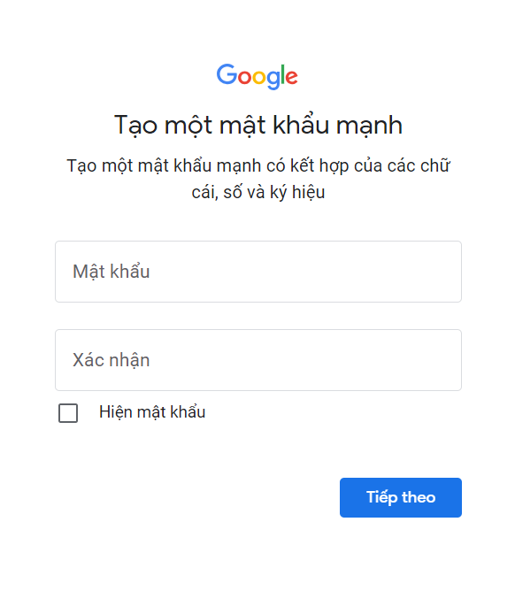 Sau khi chọn được địa chỉ Email phù hợp, tiếp tục tạo mật khẩu cho địa chỉ Email đó.